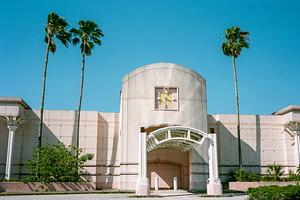 The Seminole Towne Center in Sanford, FL, closed just 30 years after it opened in 1995. The photographer had wandered the quiet, mostly-empty mall for hours, taking photos like this one before the redevelopment plans began. The contrast of the intricate concrete design with the bright blue sky and the living, swaying palm trees with their sculpted counterparts contribute to the structure feeling like a place that exists outside of time. These third space centers of commerce, in harsh sunlight and shadow, can echo a sense of community as well as unease.